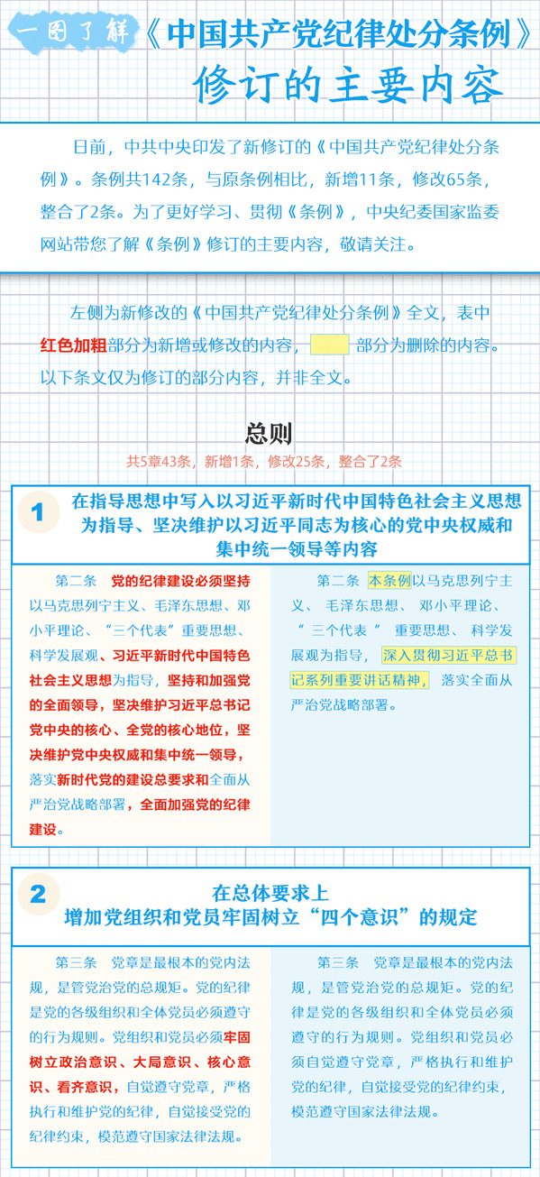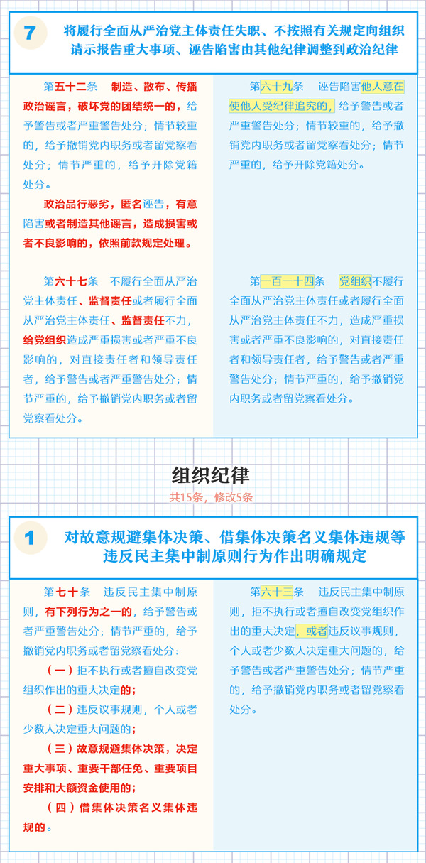 一图了解《中国共产党纪律处分条例》修订的主要内容