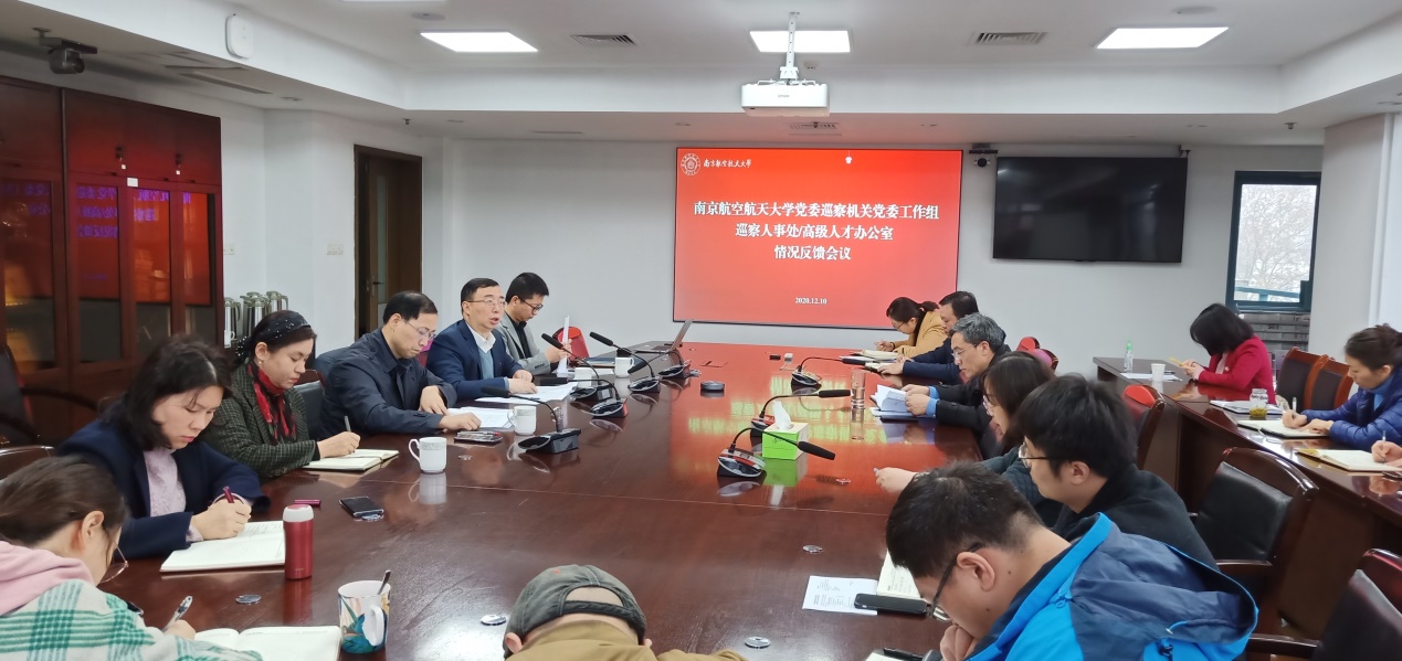 根据校党委巡察工作领导小组统一部署,2020年11月2日至11月6日,校党委巡察机关党委工作组对人事处开展了巡察。按照《中共南京航空航天大学委员会巡察工作办法(试行)》,聚焦人事处的职能职责,突出政治巡察定位,重点检查“四个落实”和治理体系与治理能力建设情况,力求通过校内巡察,强化人事处领导班子政治核心作用发挥,促进人事人才工作发展。