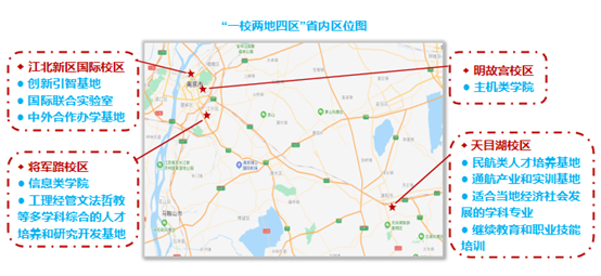 学校现有明故宫、将军路、天目湖三个校区,江北新区国际校区正在规划建设中,“一校两地四区”办学新格局已初步形成。