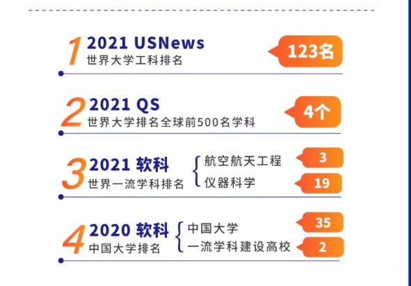 学校瞄准航空航天领域的国家重大需求和学术前沿,按照“特色引领、交叉融合”的思路,着力建设“航空航天科学与工程”学科群,促进高峰高原学科交叉融合,将“三航”办学特色贯穿于办学治校全过程,全面构建“一流工科、卓越理科、精品文科、特色交叉”的高标准学科布局,提升学校整体办公水平。工程学、材料科学、化学、计算机科学、社会科学总论、数学、物理学7个学科进入ESI全球前1%,其中,工程学进入ESI全球排名前1‰。