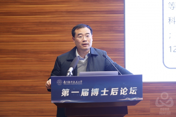 1月7日,南京航空航天大学第一届博士后论坛在将军路校区1号楼4楼报告厅成功举办。该论坛由全国博士后管委会办公室、中国博士后科学基金会、江苏省人力资源和社会保障厅主办,南京航空航天大学承办。南京航空航天大学副校长姜斌、人力资源和社会保障部专业技术人员管理司博士后处处长薛万里、中国博士后科学基金会基金管理处处长陈颖、南京航空航天大学经济与管理学院数字人才研究中心主任王修来教授、各学院分管博士后工作的负责人、各学院近100名在站博士后、博士生代表参加论坛。主论坛由人事处处长/高级人才办主任崔海涛主持、分论坛由人事处副处长黄海鸣主持。