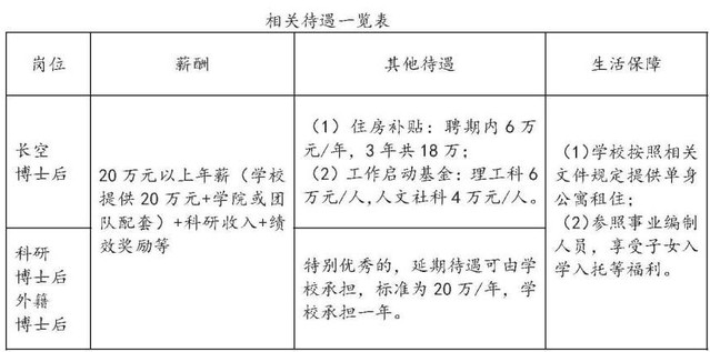(1)学校准聘长聘教师岗位优先从期满出站的长空博士后、晋升高级专业技术职务的科研博士后中选拔;学校专职科研岗位优先从博士后中选拔。
