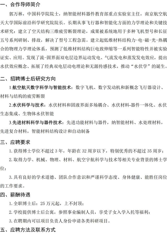 南京航空航天大学郭万林院士团队诚招优秀博士后