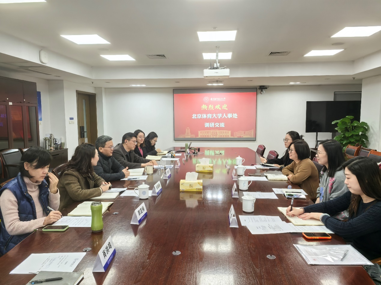 1月26日,北京体育大学人事处处长王玉倩一行来我校调研机构编制改革、人事人才相关工作,我校人才工作办公室主任张助华及相关人员参加调研。