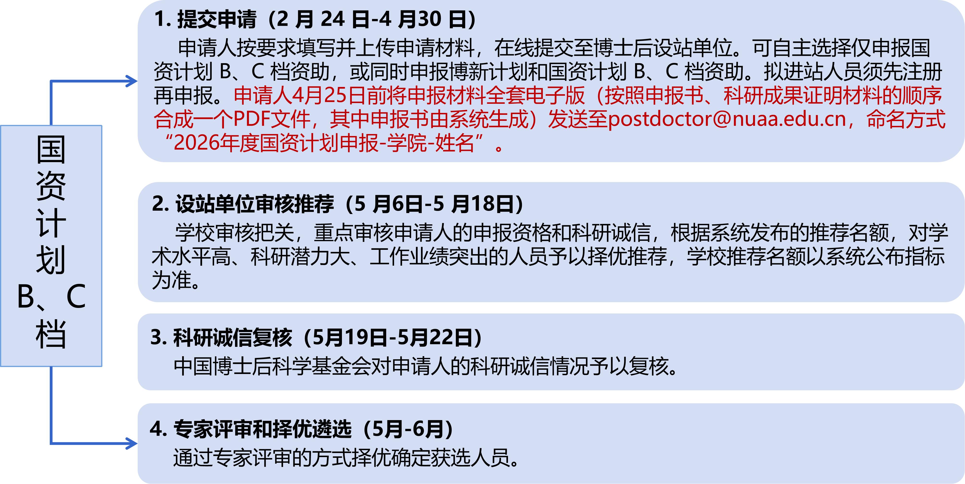 6.请各学院做好“国资计划A、B、C档”宣传工作,动员优秀博士后毕业生申报和高水平专家积极推进,按照时间节点完成推荐和申报工作。